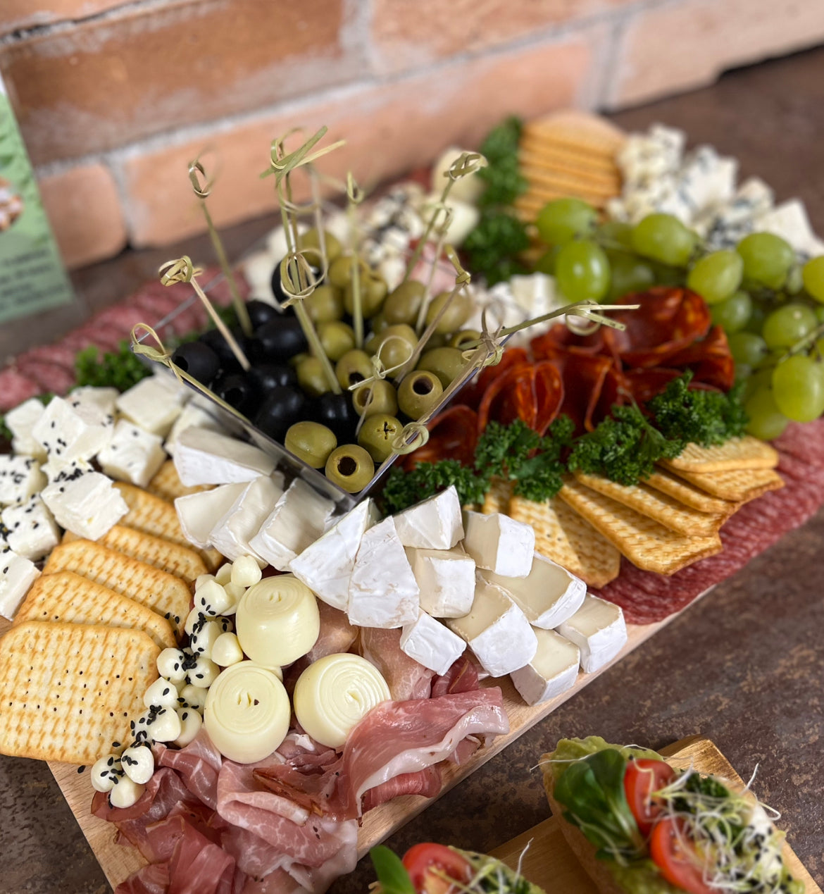 Antipasti so šunkami, salámami, syrmi rôznych druhov, zeleninou, ovocím, krekrami…